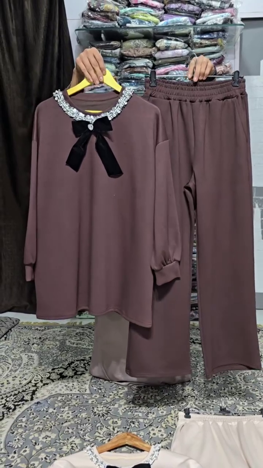 Elegant Pearl Bow Lounge Co-Ord Set for Women