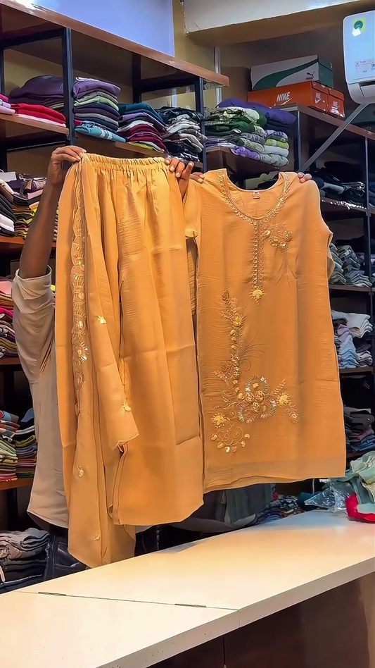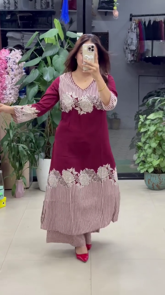Festive Embroidered Kurti Palazzo Set with Dupatta