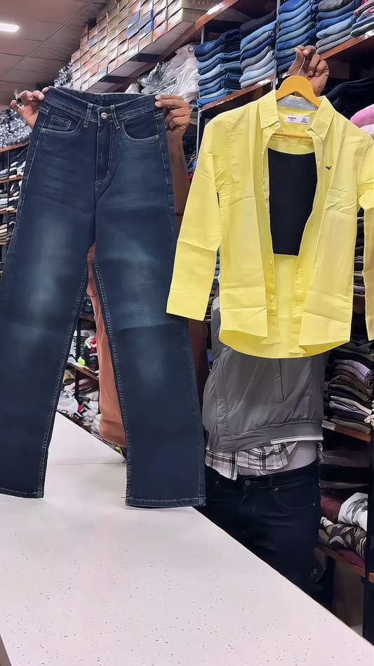 Trendy 3-Piece Shirt, Inner & Wide-Leg Jeans Set for Women